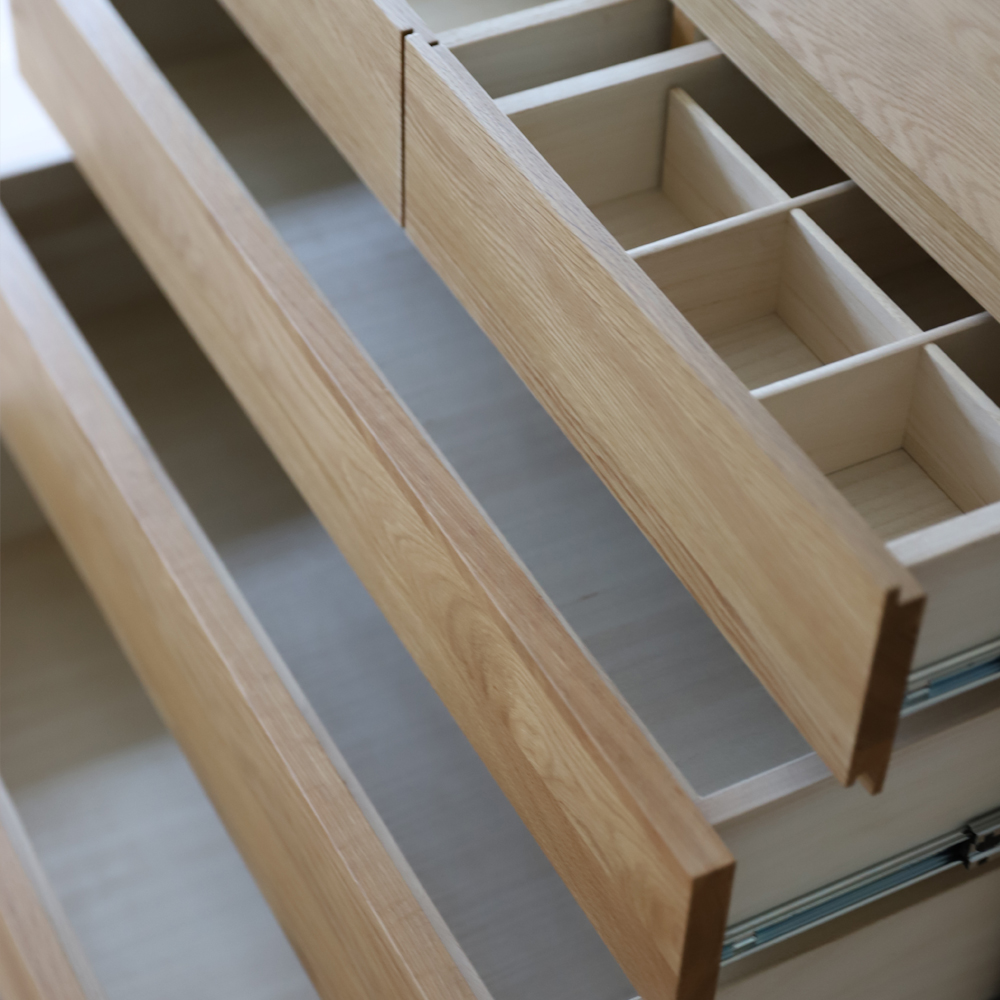 引出し前板:ホワイトオーク材無垢