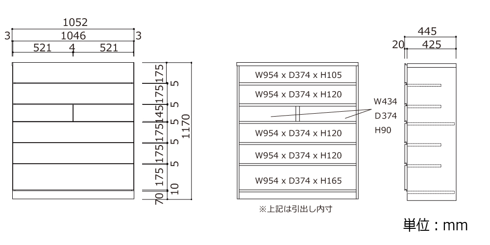 本体が倒れてくる可能性がありますので、引出しに荷重をかけたり、複数の引き出しを同時に開けないようご注意ください。