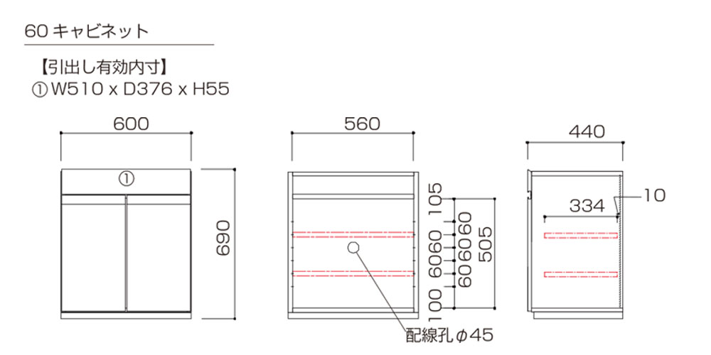 60キャビネットサイズ詳細(単位:mm)