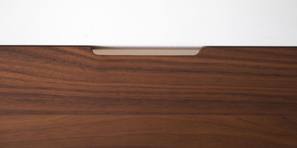 引出し前板、扉引手:ウォールナット無垢材