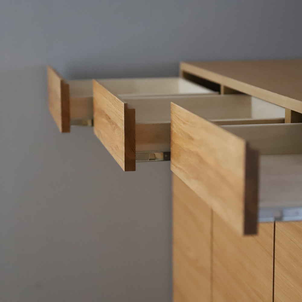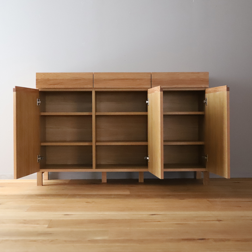 ホワイトオークを使用したレッチェシリーズのサイドボードです。自然な風合いに仕上り、シンプルなフォルムはあきのこないナチュラルモダンなデザインになっています。※画像はイメージです。