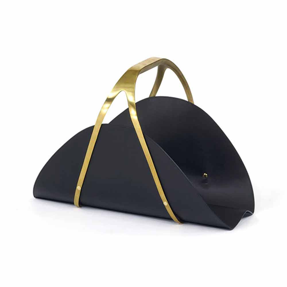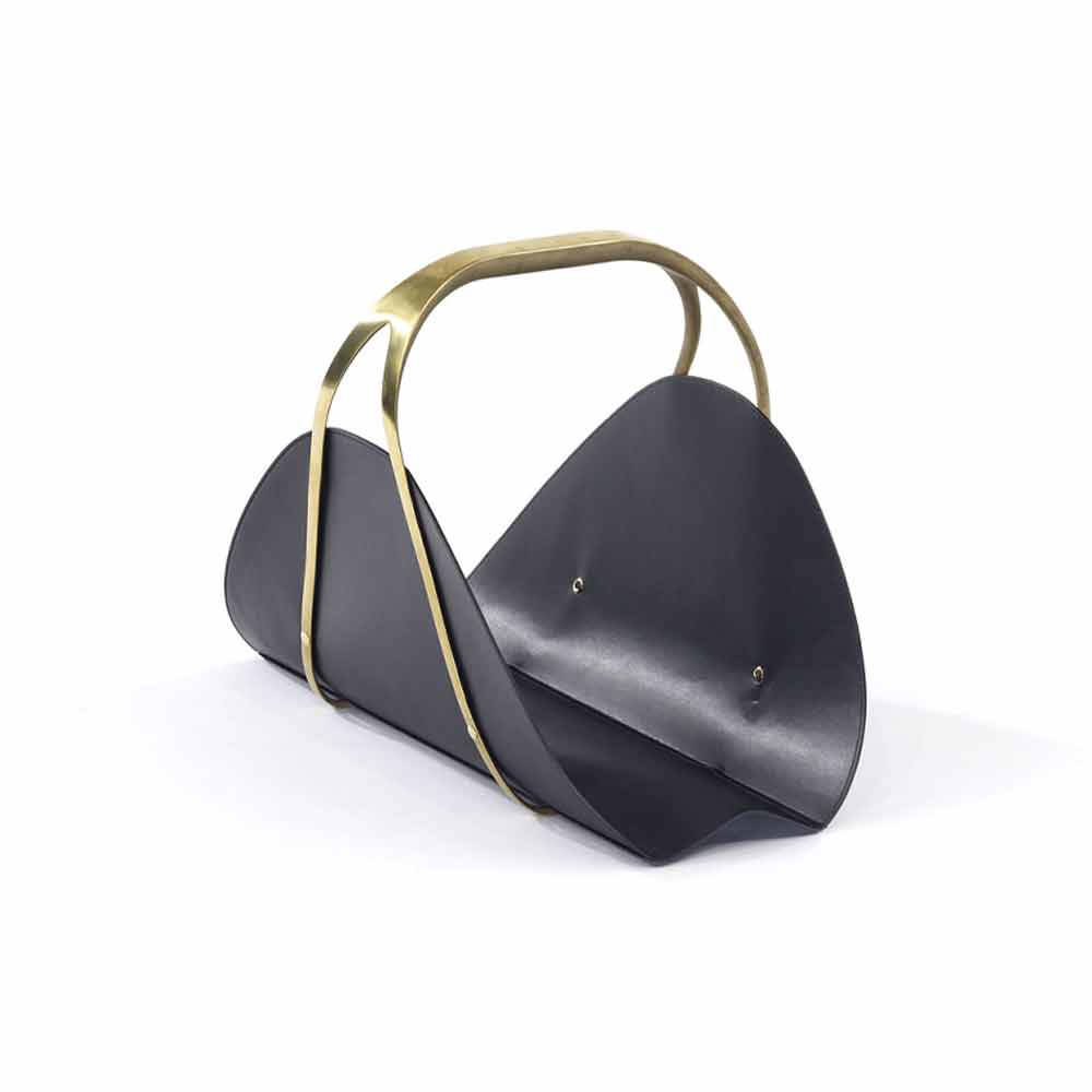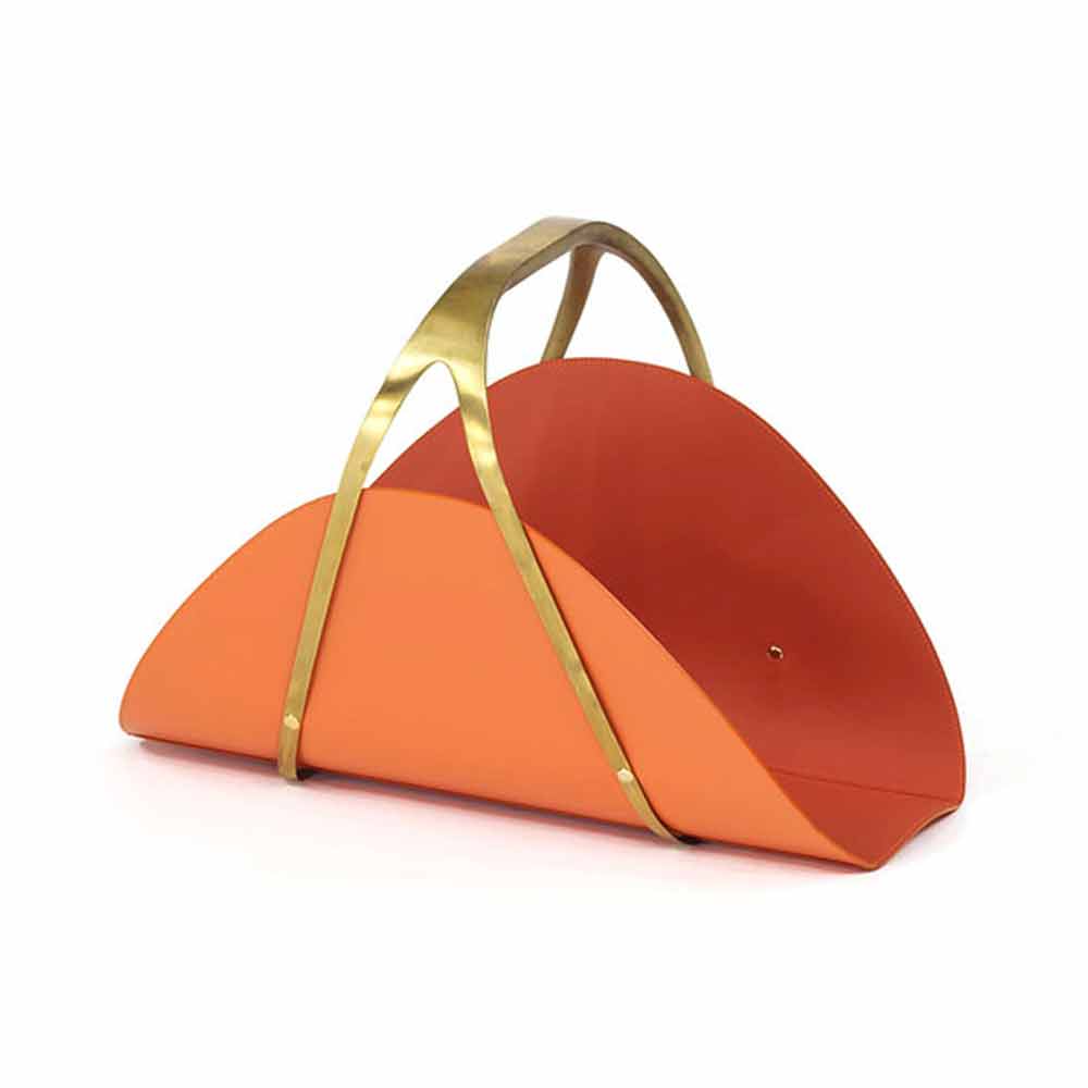 美しい光沢をもつ真鍮と革を組合せたおしゃれなマガジンラック。エレガントな真鍮の持ち手と、それを引き立てる革との相性が抜群で存在感があります。