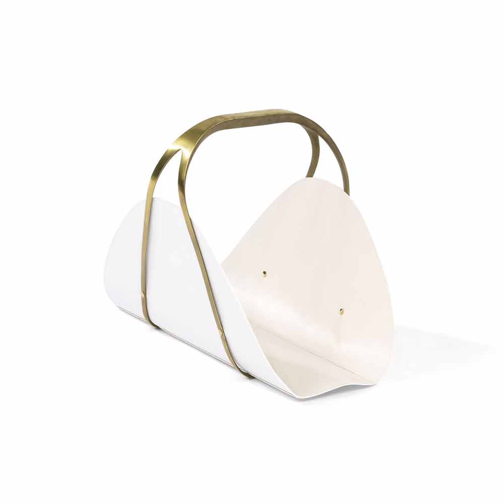 美しい光沢をもつ真鍮と革を組合せたおしゃれなマガジンラック。エレガントな真鍮の持ち手と、それを引き立てる革との相性が抜群で存在感があります。