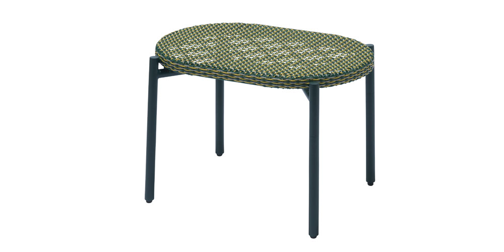 ハンドクラフトで織り込まれた人工ラタンは、3色を組み合わせています。例えばグリーンは、グリーン、イエロー、グレーの3色の人工ラタンを編み込むことで単色では出すことができないやわらかなニュアンスが生まれます。