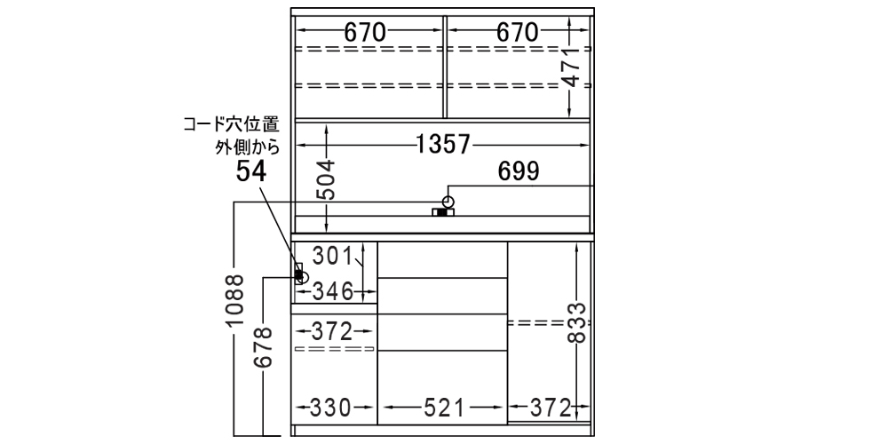 | オープン部分 | 幅1357x奥行464x高さ504 |