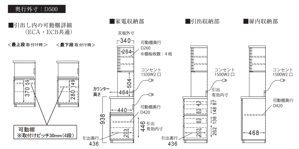 | 家電収納部分 | 幅346x奥行440x高さ301 |