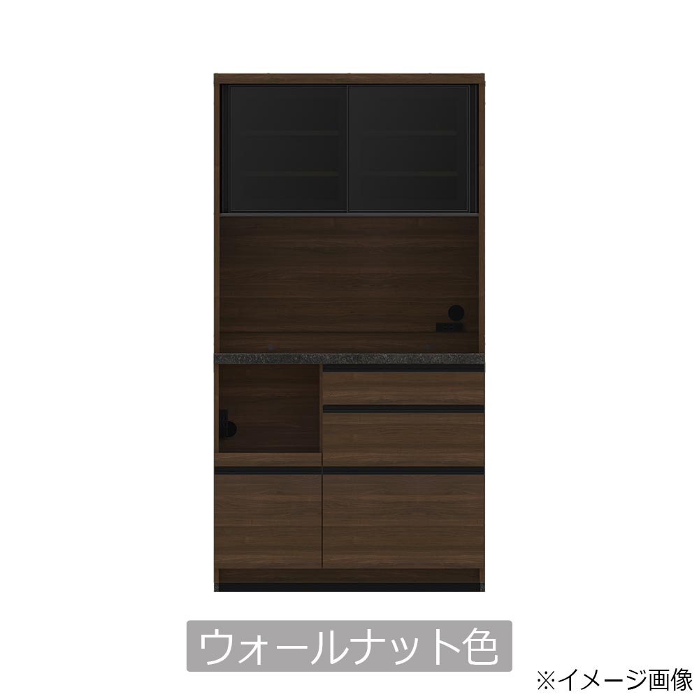 色柄に連動したガラス扉、引手、コンセント、天板の色で統一感のあるデザインが魅力です。側面も前面と同じ柄になっており、側面が見えるレイアウトでもインテリア性を損ないません。低めのカウンターでオープン部分が使いやすいレギュラーカウンターは、総高も低く、上台の収納物も取り出しやすい設計です。