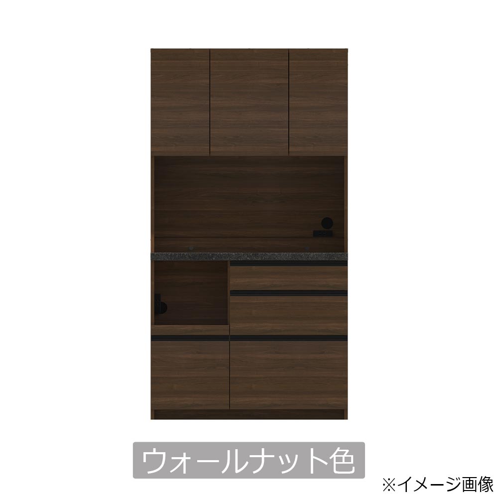 引出しのすべてにソフトクローズを採用し、快適な使い心地にこだわったニュースタンダードモデル。清潔感のあるホワイト、インテリアとのコーディネートをお楽しみいただけるウォールナット、セラミカネロの3色展開です。低めのカウンターでオープン部分が使いやすいレギュラーカウンターは、総高も低く、上台の収納物も取り出しやすい設計です。※画像はイメージです。