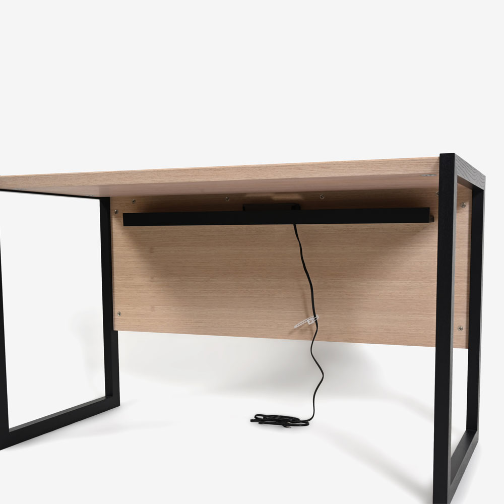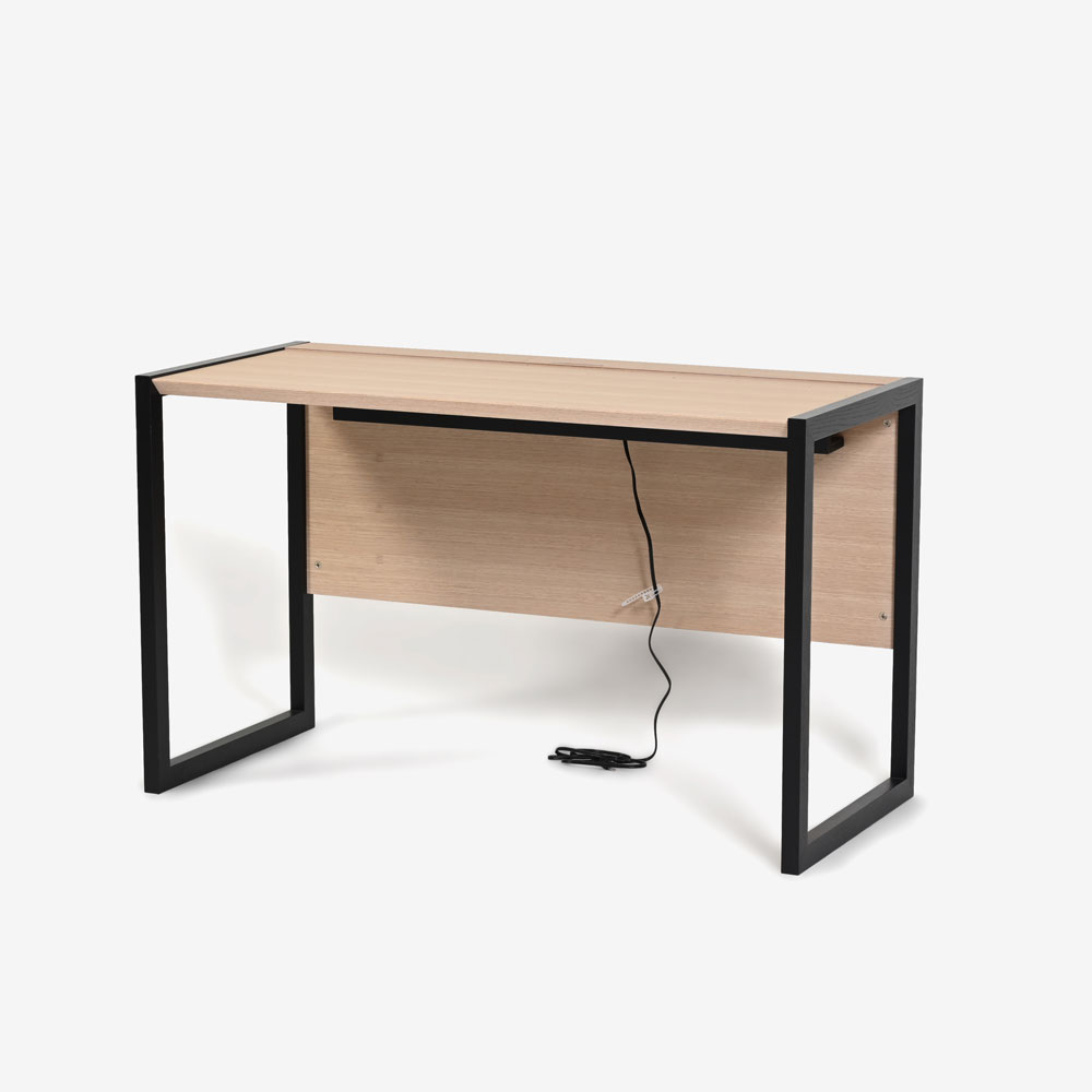 ナチュラルとモノトーンによる、スマートでスタイリッシュなデスクです。シンプルで合わせやすく、オフィスでもホームユースでもシーンを選ばないデスクです。バックボードもキレイに塗装してありますので対面式デスクとしてもおすすめです。※画像の商品は幅120cm、天板ウッドのものです。