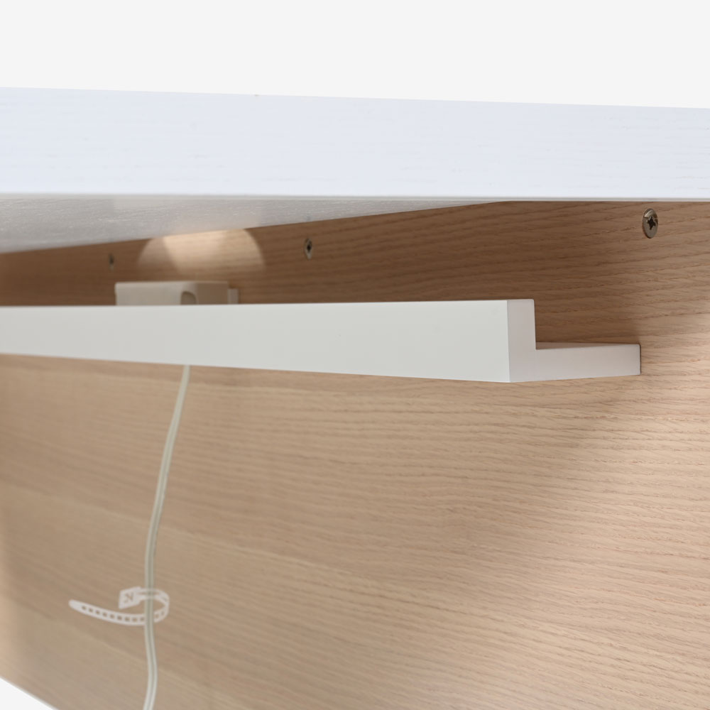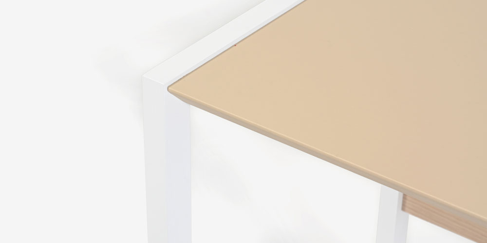 両サイドは、机上のものが滑り落ちないように脚の縁に高さを出しています。