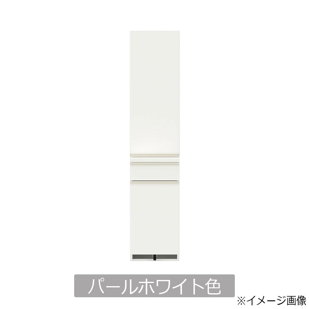 清潔感があり、圧迫感を軽減してくれるパールホワイト。前板と天板にパモウナ独自の「ダイヤモンドハイグロス」を採用し、スリキズや汚れに強く、お手入れも簡単です。※画像はカラーのイメージです。本ページの商品は使われておりません。