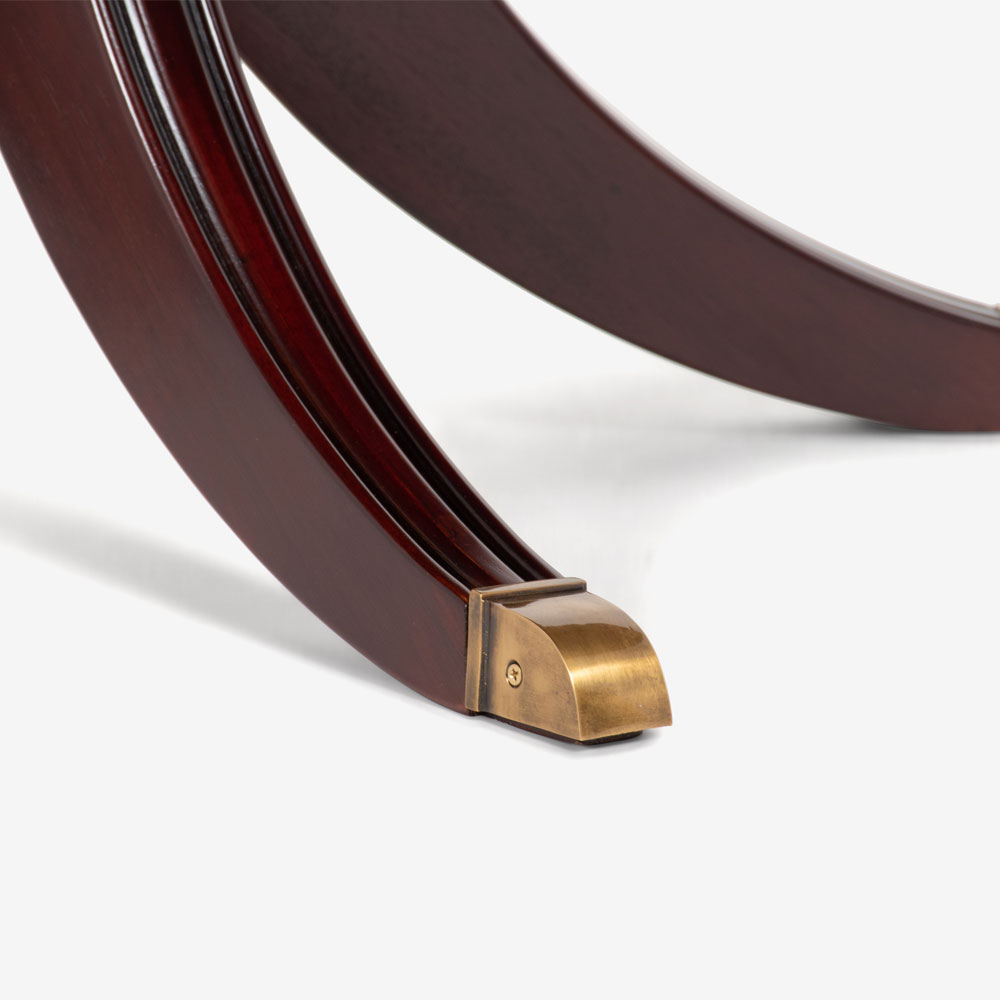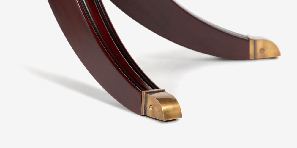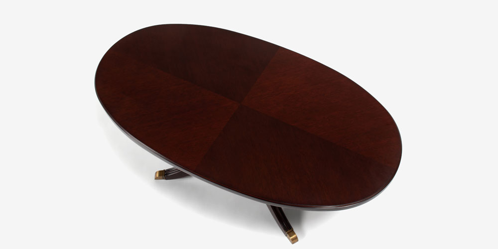 重厚感のあるぺディスタル(柱脚)が特徴的な楕円型のセンターテーブルです。高級材のマホガニーを使用。その美しい木目と洗練されたデザインが上質な空間を演出します。