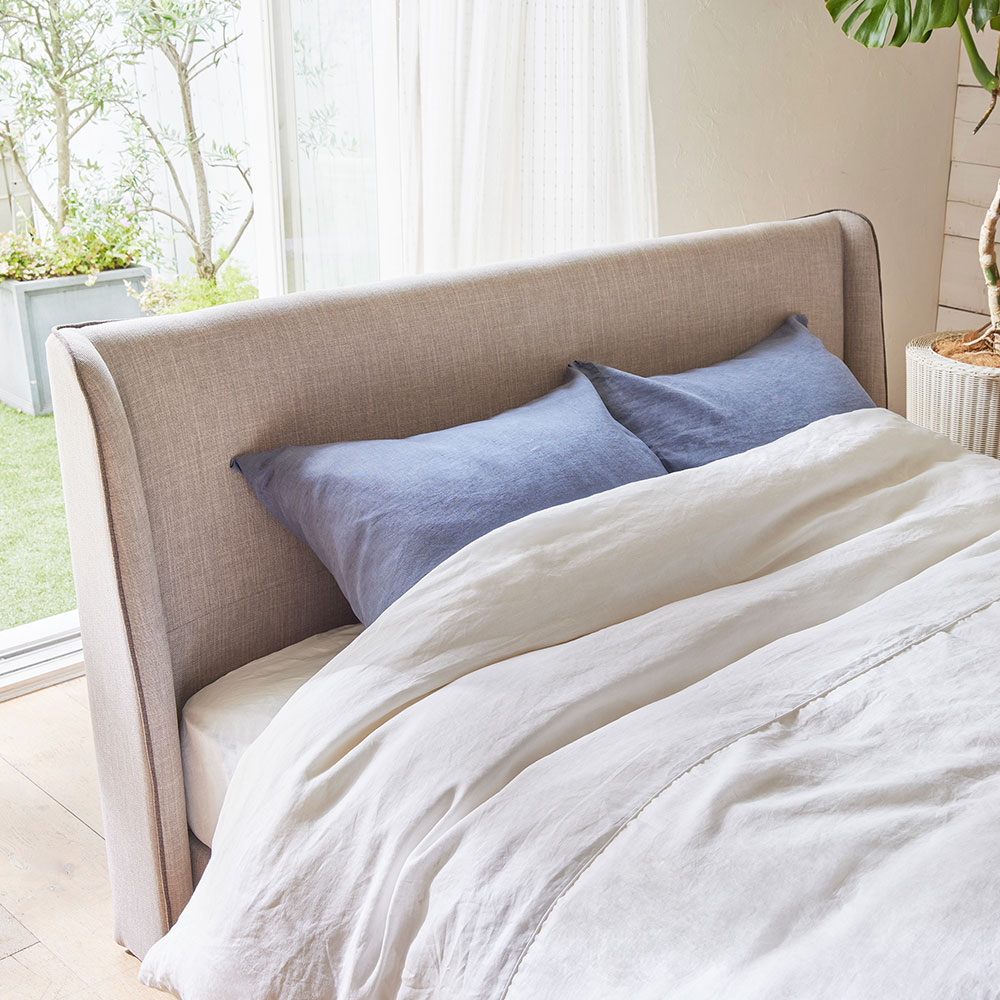 ファブリックの張地がやさしい雰囲気を演出してくれるベッドフレームです。※画像はワイドダブルロングを使用したインテリアイメージです。