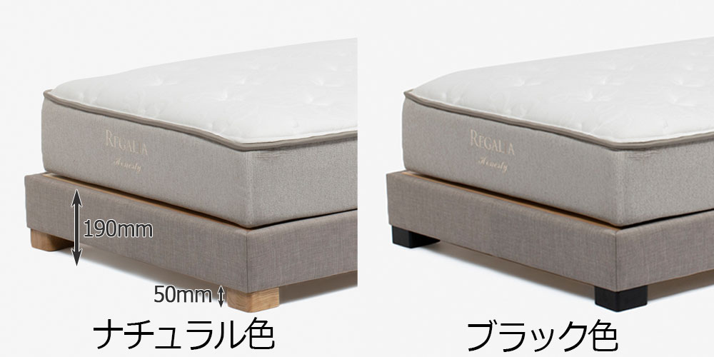 ベッドルームのインテリアに合わせて脚部カラーをお選びいただけます。角脚はマットレスと合わせた際の高さを抑えたい場合におすすめなロータイプです。※サイズは参考値です。商品の個体差により多少の誤差がございます。