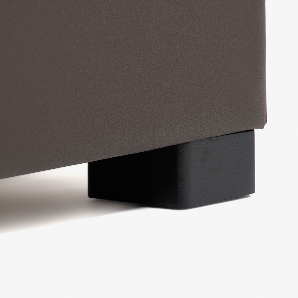 デザインのポイントとなるヘッドボードの表側には本革を使用しており、素材のもつ上品な印象を空間に与えてくれます。見た目だけでなく、本革ならではの質感を感じられる肌触りも魅力です。※マットレスで隠れる部分や背面、サイドフレームにはPVC(合成皮革)を使用した半革張り仕様です。
