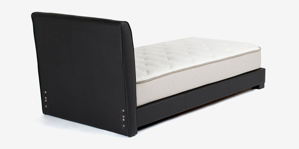 デザインのポイントとなるヘッドボードの表側には本革を使用しており、素材のもつ上品な印象を空間に与えてくれます。見た目だけでなく、本革ならではの質感を感じられる肌触りも魅力です。※マットレスで隠れる部分や背面、サイドフレームにはPVC(合成皮革)を使用した半革張り仕様です。