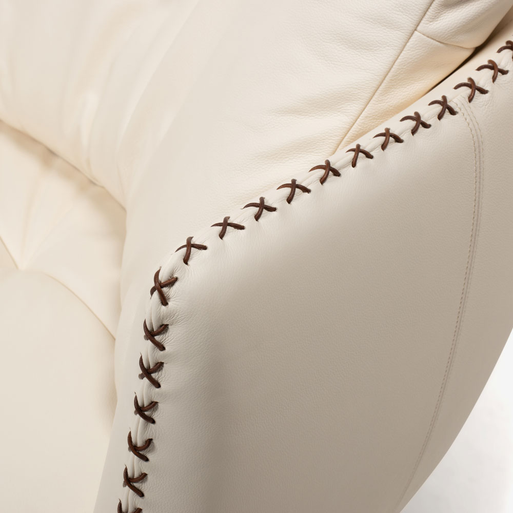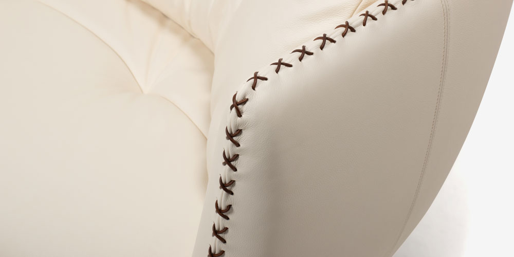 使用する革は寒冷な地方で自然放牧された雄牛の肌理の細かいものだけを使用します。丈夫でしなやかな質感を実感していただけます。座面には5種類の密度の異なるウレタンとポケットコイルを内蔵して最高の座り心地を作り出しています。