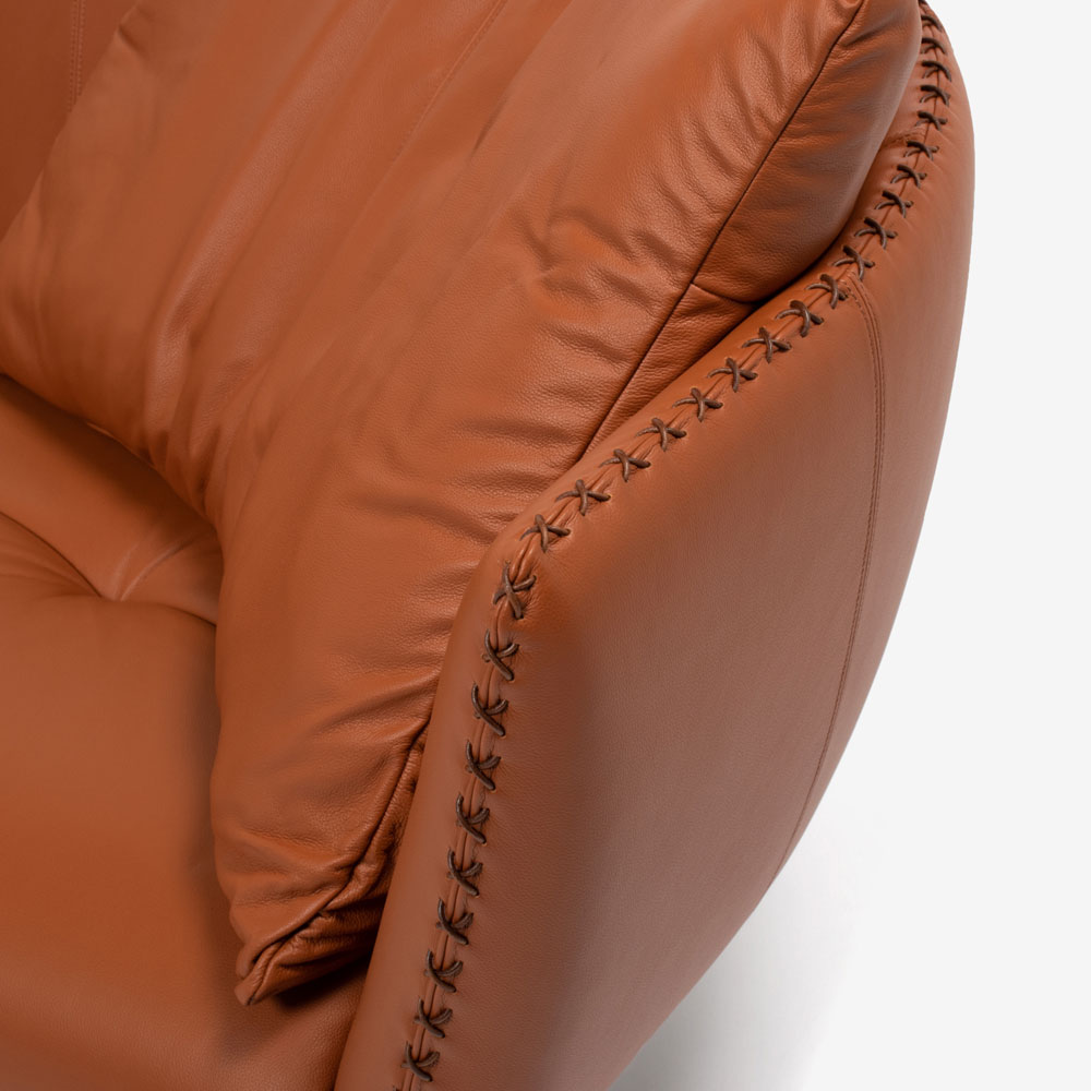 デザイナーのマティアス・ホフマンのインスピレーションと、デセデ社の技術が融合したからこそ実現できる三次元フォルムです。特に後ろから見た時のインパクトは大きく、壁付のレイアウトだけではなく背中を見せるレイアウトもおすすめです。