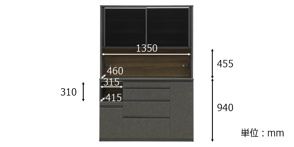 | オープン部分 | 幅1350x奥行460x高さ455 |