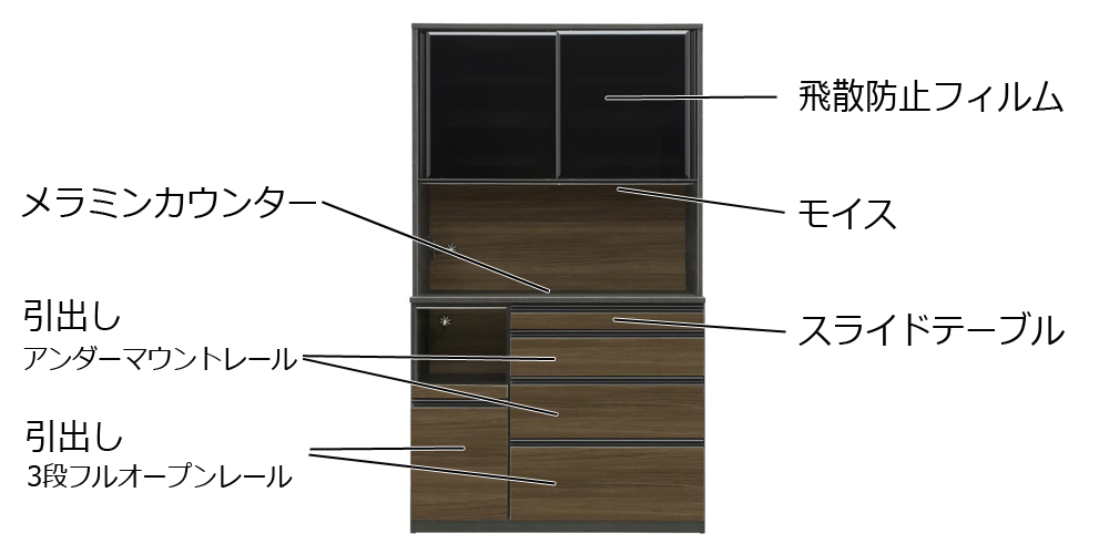 オーブンレンジや炊飯器などの外部に蒸気や熱を放出する物を収納する場合は、ご使用になる家電製品の取り扱い説明書に従ってください。