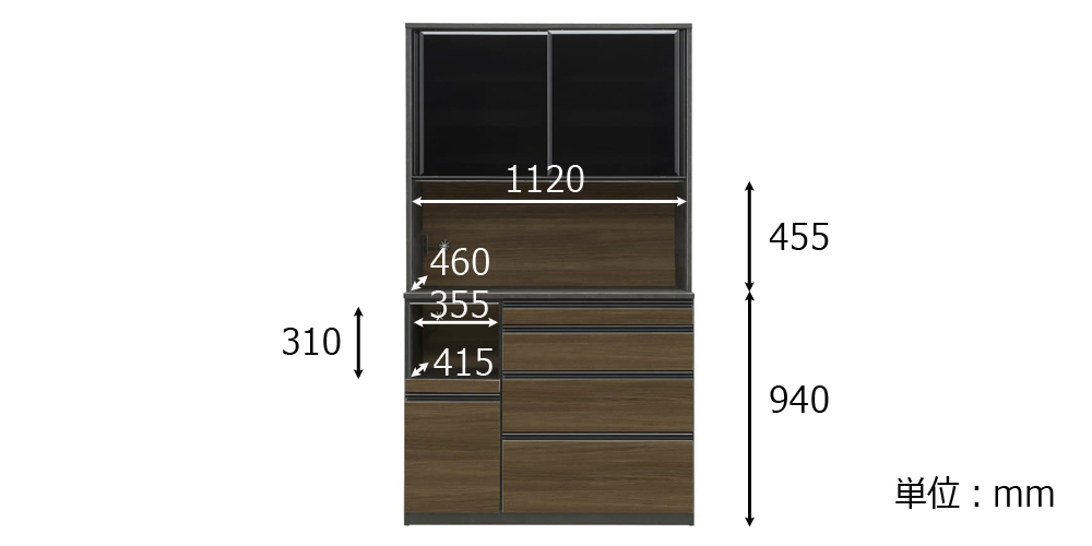 | 家電収納部分 | 幅 355x奥行415x高さ310 |