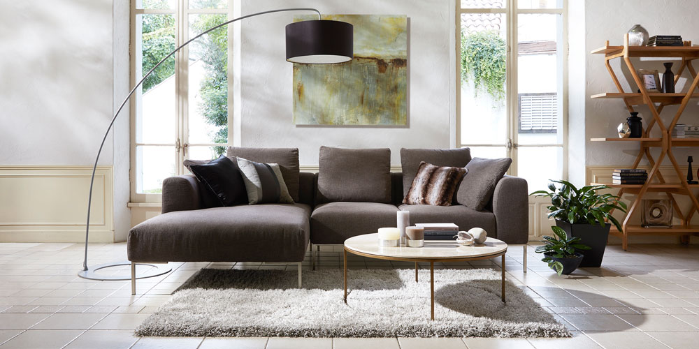すっきりとした脚部が特徴的なソファとの組み合わせは、お互いのシャープなデザインを引き立てあい、上品なモダンスタイルを叶えます。
