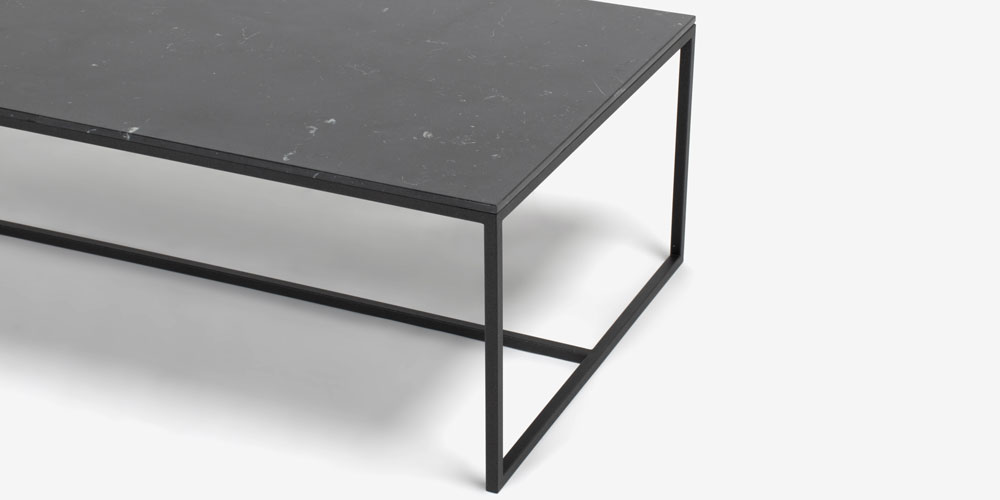 モノトーンのコントラストが美しいブラックマルキーナを使用したセンターテーブルです。薄く仕上げた天板は重厚になりすぎず、上品な美しいシルエットが印象的です。