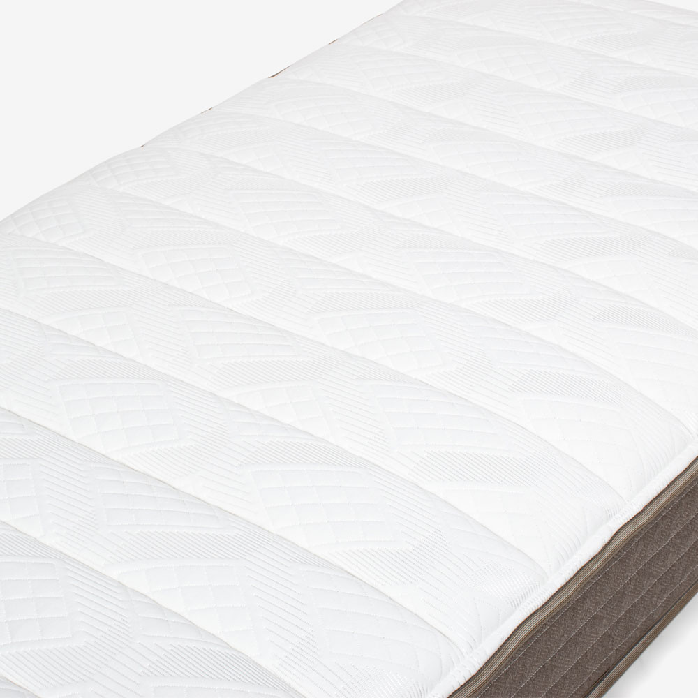 長いストロークでしなやかに身体を支える8インチのポケットコイルを使用。センターハードポケットコイルとアダプティブランバーサポートで腰部分のサポート力とフィット感を強化しています。外周をフォームケースで補強することで端部分の過度な落ち込みを防ぎ、マットレスを広くお使いいただけます。