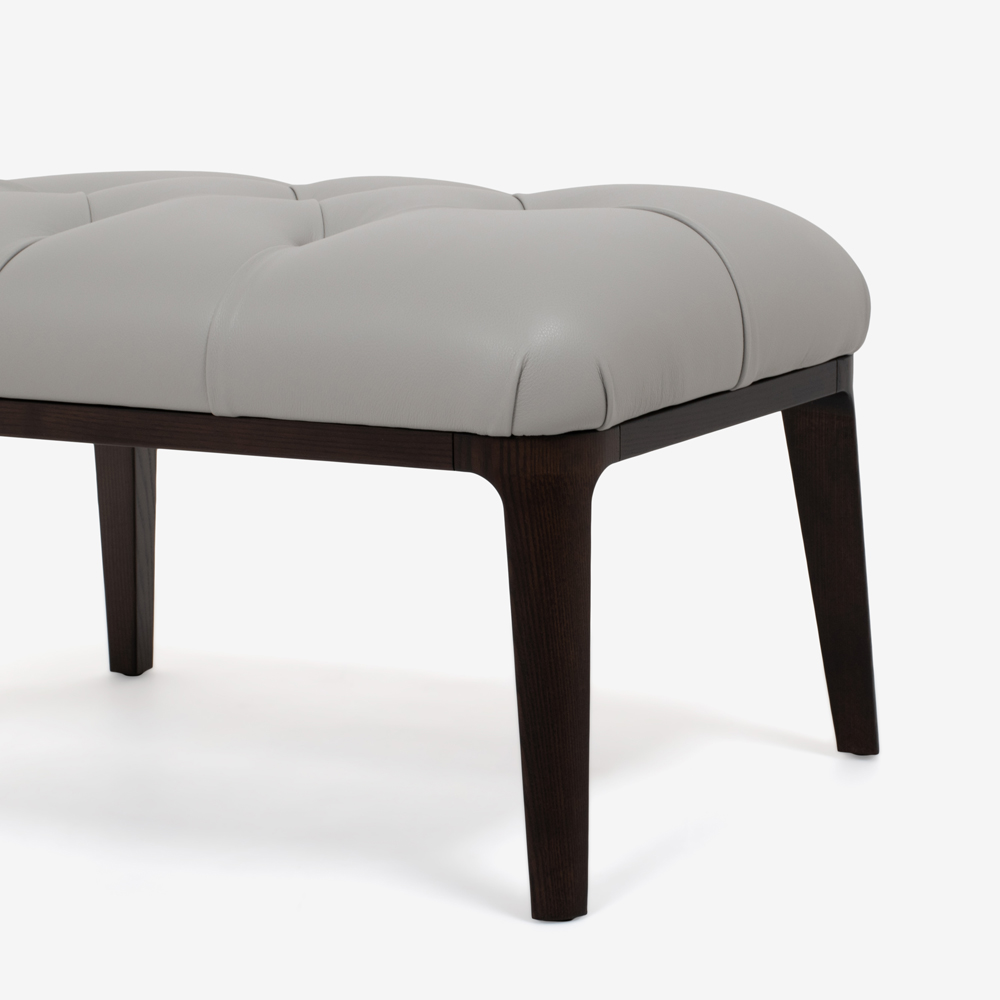 ポルトローナ・フラウのアームチェアが「2019 グレン」用のオットマンです。ピアノスツールからインスピレーションを受けたデザインはフットレストとしてだけではなく、ベンチとしてもご使用いただけます。