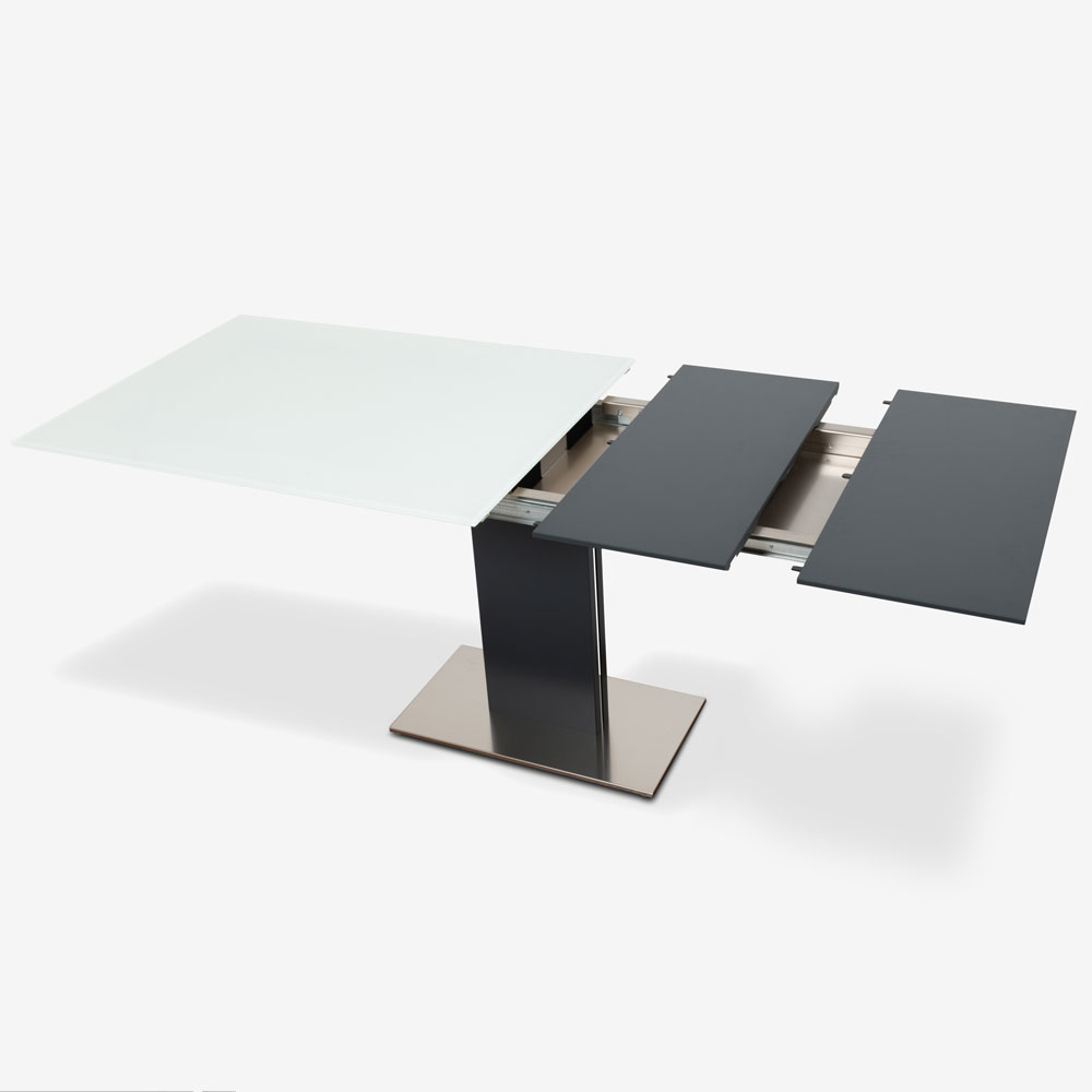 伸長式ダイニングテーブル「BINGO P4600/E」幅110-145-180cm ガラス天板