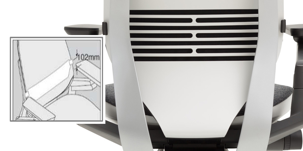 バックシェルと張地の間に組み込まれています。上下102mmで調節できます。