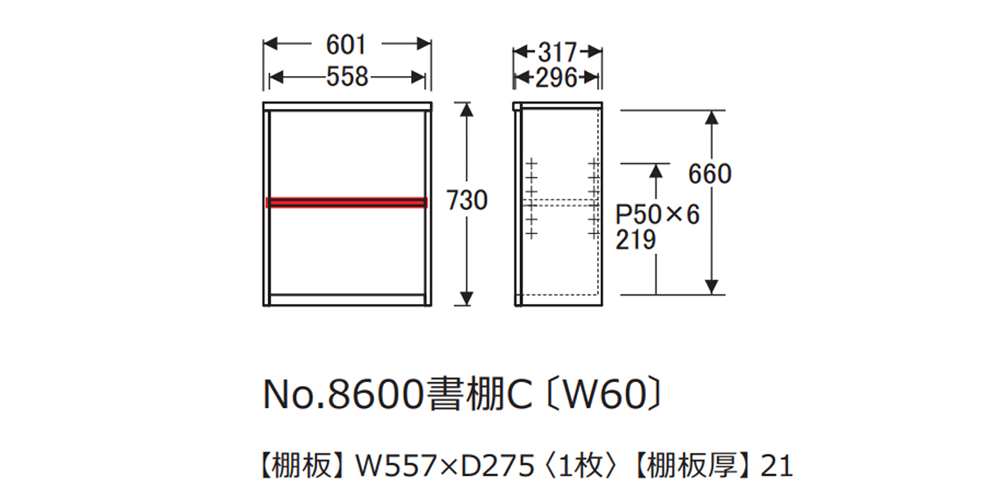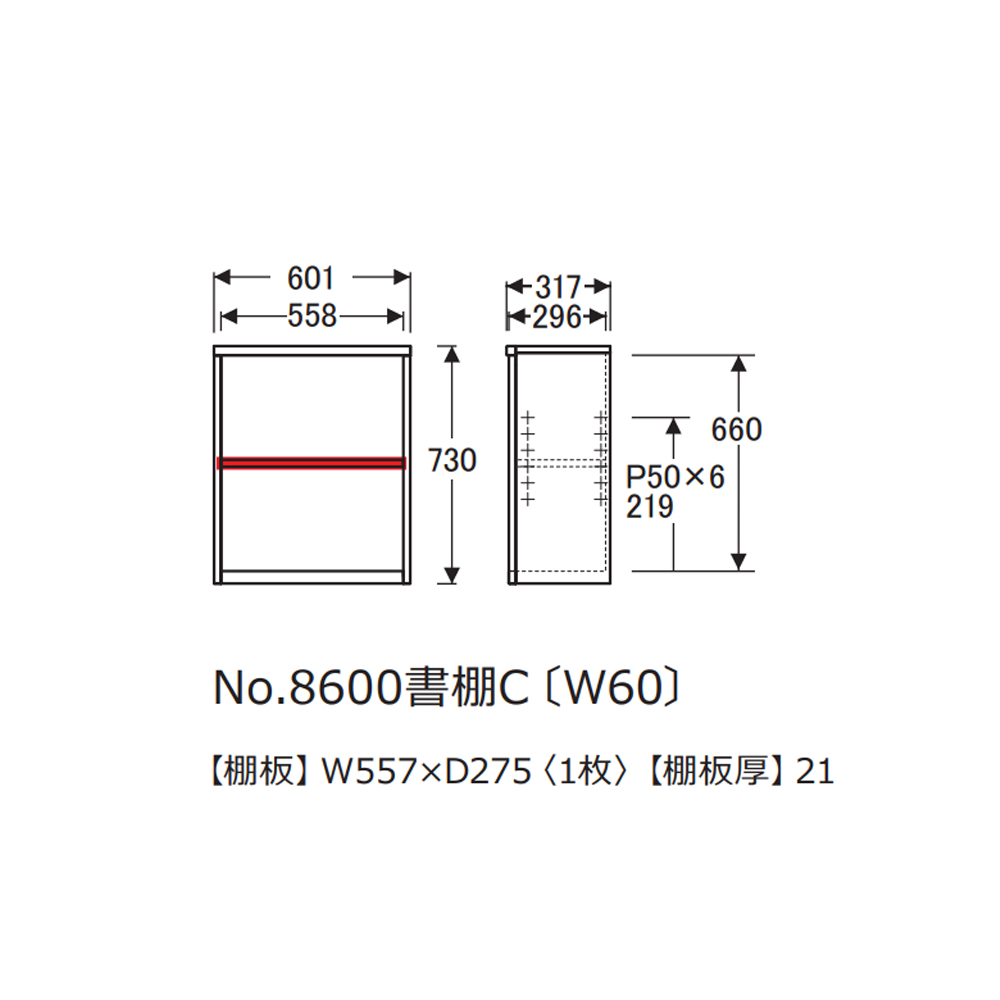 スリムな奥行きとシンプルなデザインの書棚「No.8600C・No.8604C・8608C」