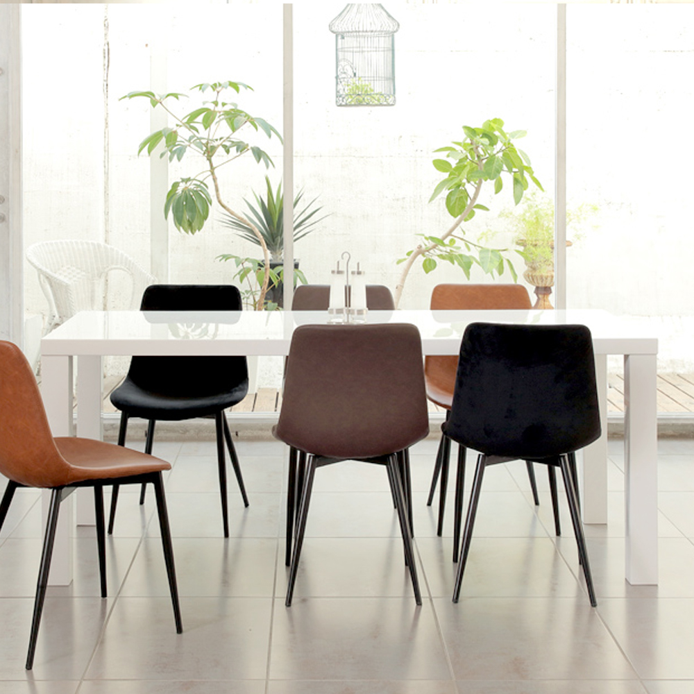 ベロア調生地使用したヴィンテージスタイルのダイニングチェア「Aldo アルド」布ブラック色
