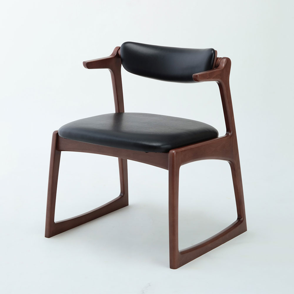 落ち着いたカラーのフレームにブラックの合成皮革(PVC)張りで上品な印象です。※画像は同シリーズの中座椅子タイプのものです。