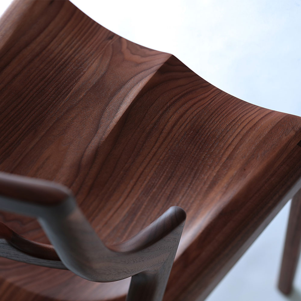 ウォールナット無垢材の温もりある風合いと座り心地にこだわったデザイン