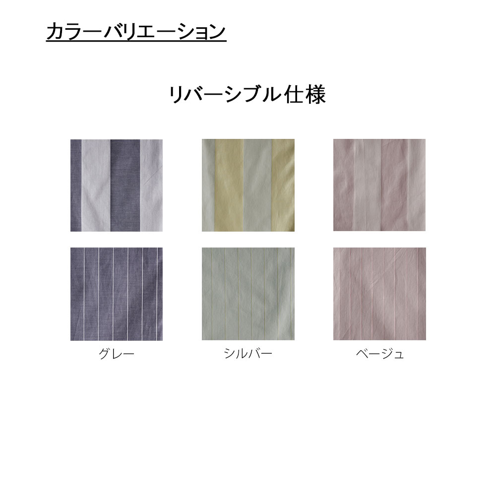 異なるストライプ柄を使い分けることができるリバーシブル仕様です。糸の段階で染め出す先染めにより染料の色乗りがよく、製織すると、深みがあり、艶やかかつ上品な仕上がりになります。※画像はグレー色です。