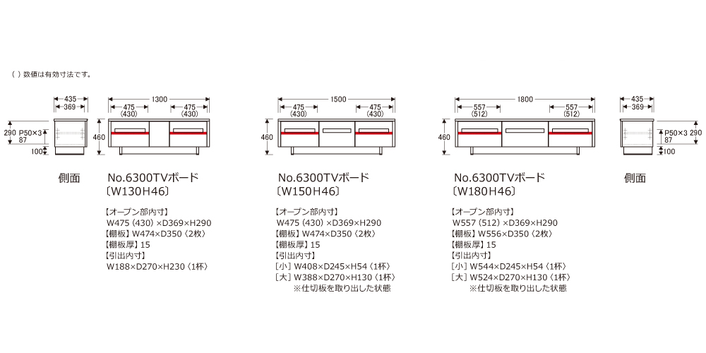 | 幅1300mmタイプ | 幅1300x奥行435x高さ460 |