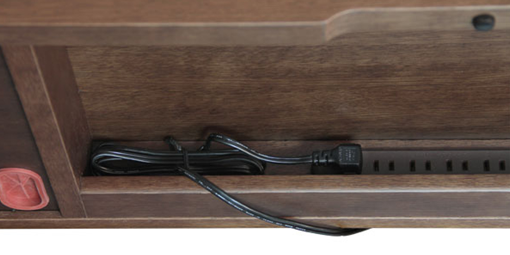 背面にあるコンセント部分に配線収納が付いているので、余分な配線コードをまとめて収納できます。