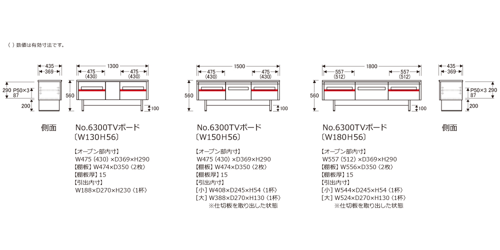 | 幅1300mmタイプ | 幅1300x奥行435x高さ560 |