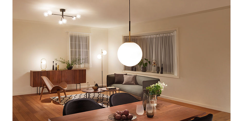 ブラック色のフレームと球状の6つのセード。MLX-COSMO/6はその幾何学的なデザインでお部屋をモダンな印象にします。