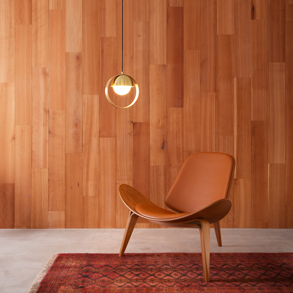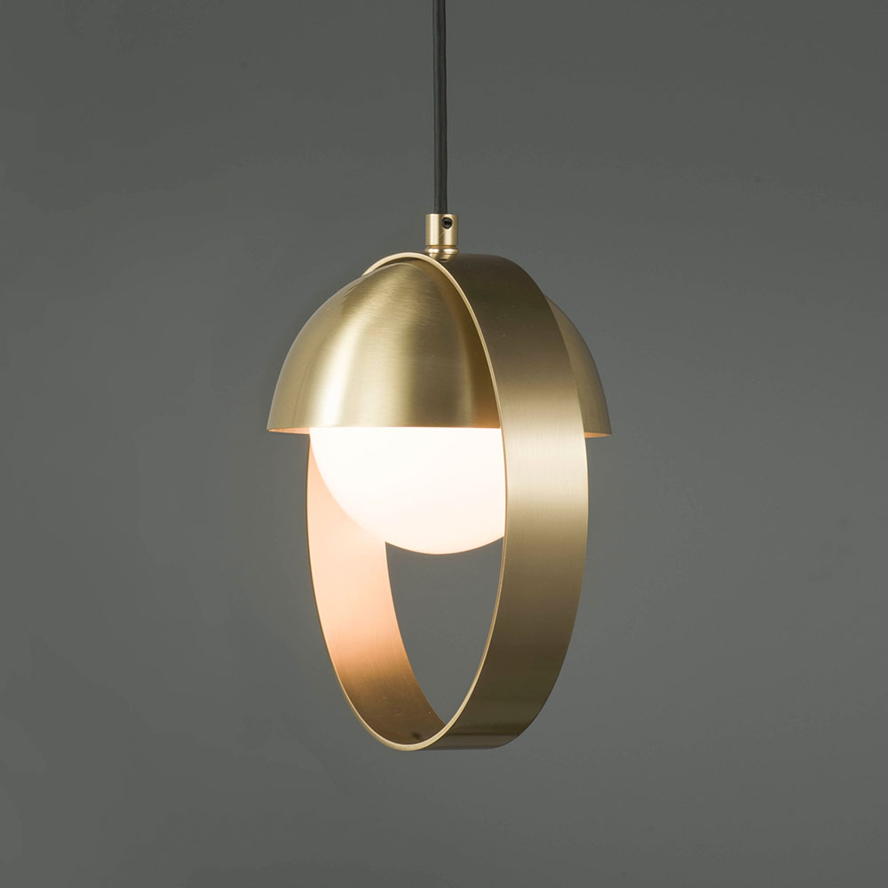 異素材の組合せが目を引くペンダントライト。乳白色のセードから漏れた光が磨き仕上げの真鍮を優しく、美しく輝かせます。コード収納フレンジが付属していますので、お好みの高さに調節ができます。