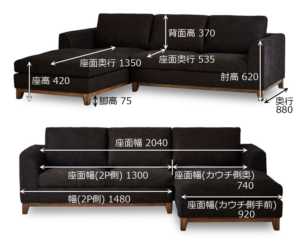 フルカバーリング仕様のファブリックカウチソファ「ブリスト」