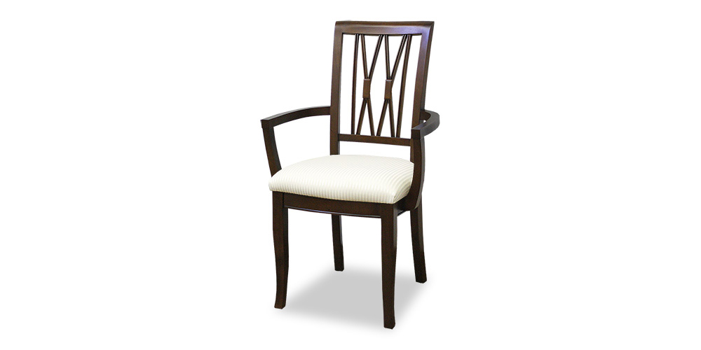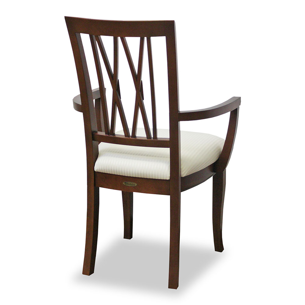 ダイニングチェア(アーム付き)「ベネチア H-S」マホガニー材 布ホワイト色