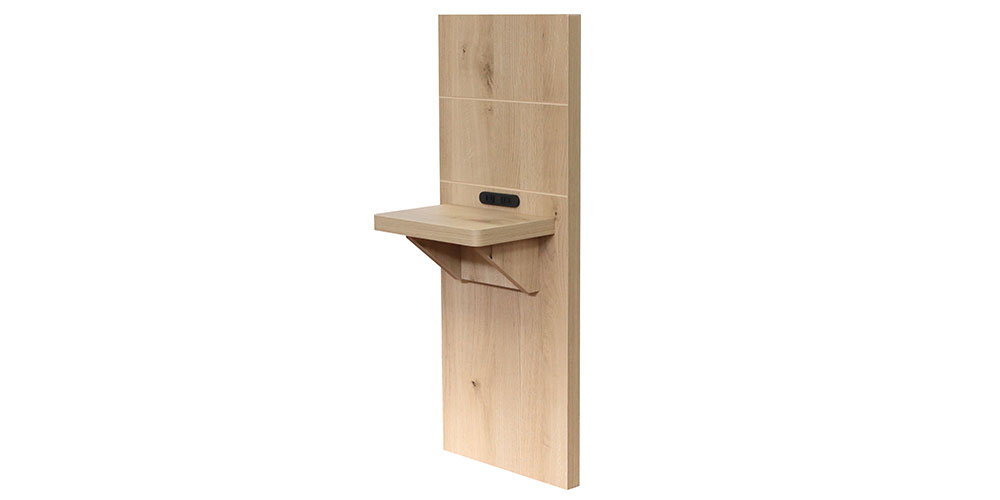ヘッドボードに取り付けられる専用のナイトテーブルもございます。横に取り付けるのはもちろん、2台の間に設置するホテルライクなレイアウトにもおすすめです。※画像はトレンドオーク色です。