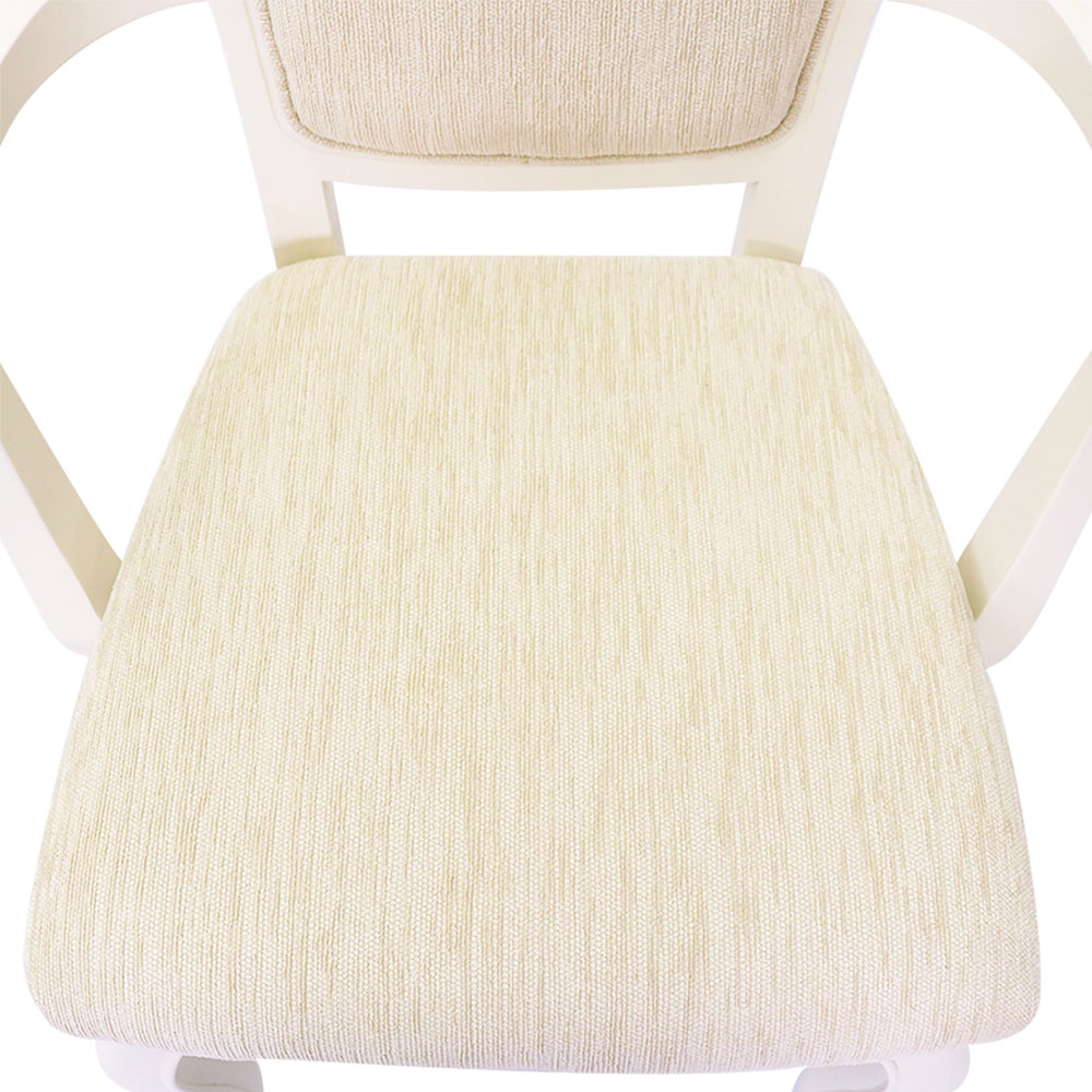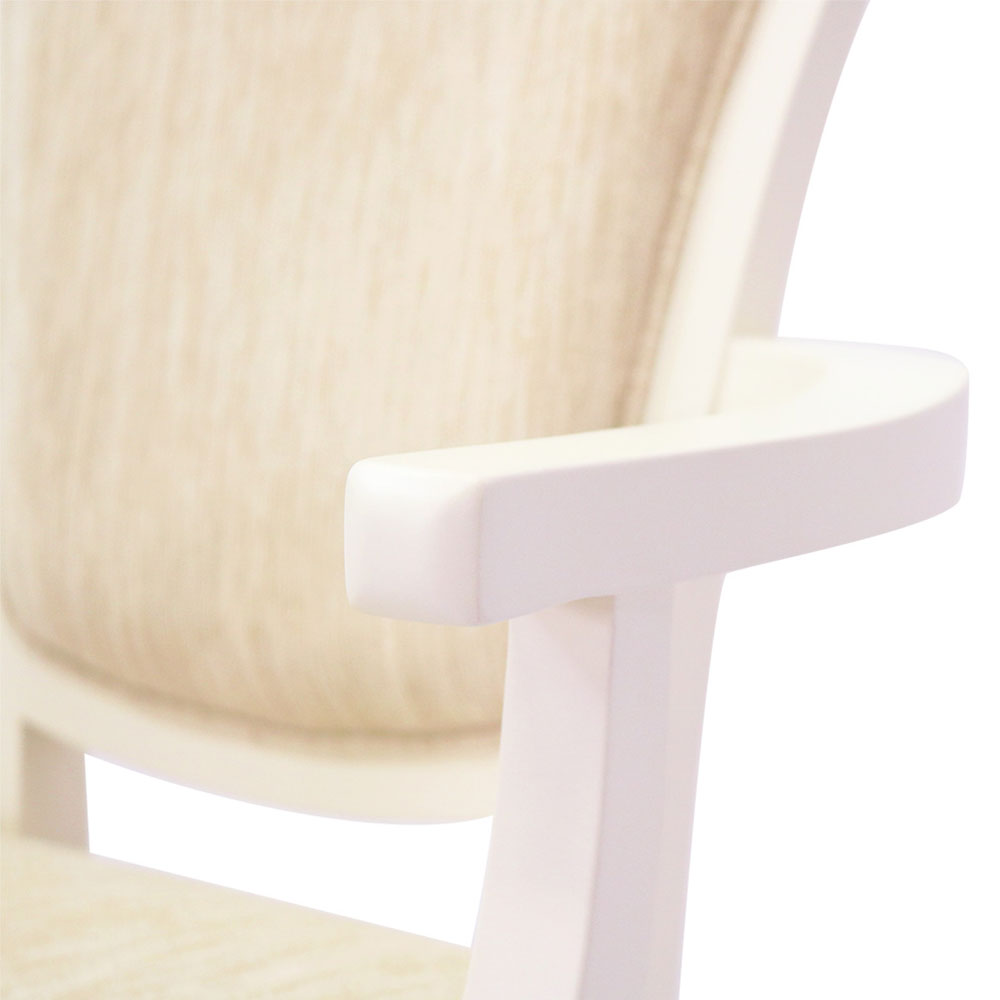ダイニングチェア(肘付き)「フルールD WH」リンデン材ホワイトウォッシュ色 布ベージュ色