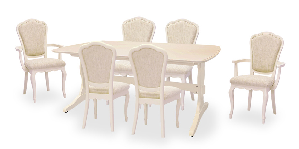 フレンチカントリースタイルの家具のデザインは丸みを帯びた優美なラインのものが主流で、 フレンチエレガンスの代名詞ともいえる「カブリオールレッグ」(猫脚)となめらかな女性的な 美しいラインが特徴です。フェミニンスタイル、ガーリー・ロマンティック等の エレガンススタイルやロココ調コーディネートで、優しい気分になれるような インテリア空間を作り出してくれます。