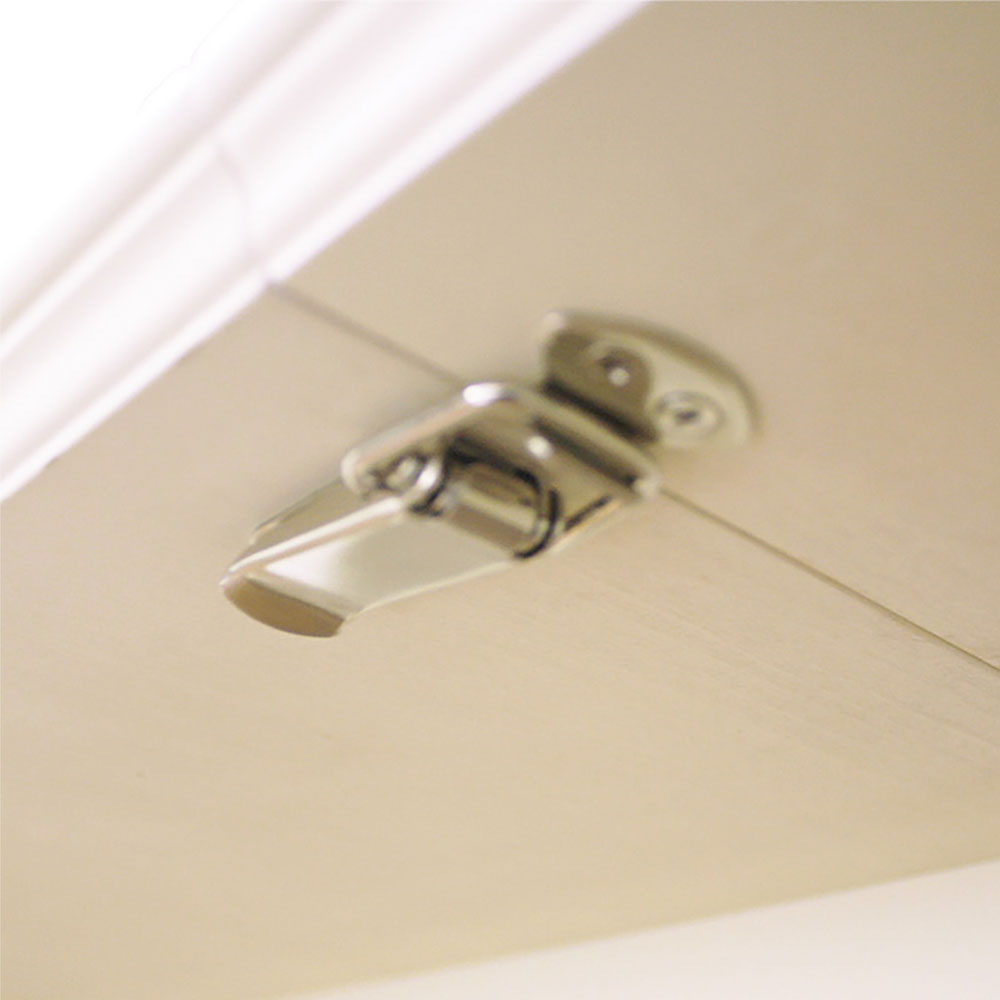 天板裏の天板固定用金具を掛けて天板を固定します。