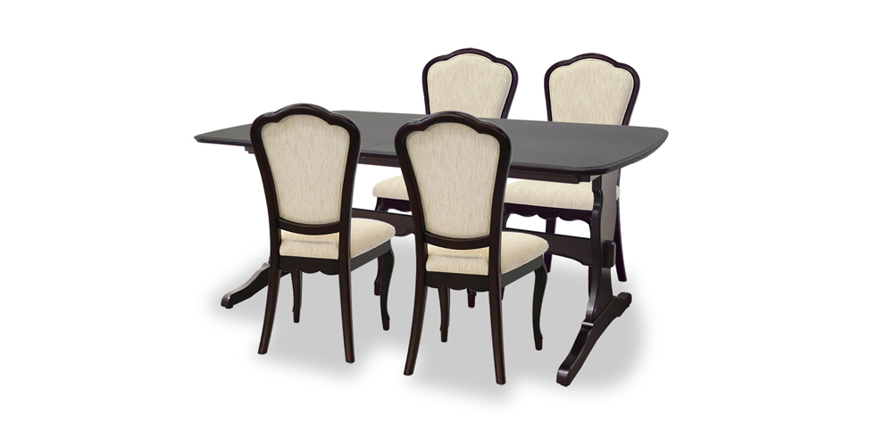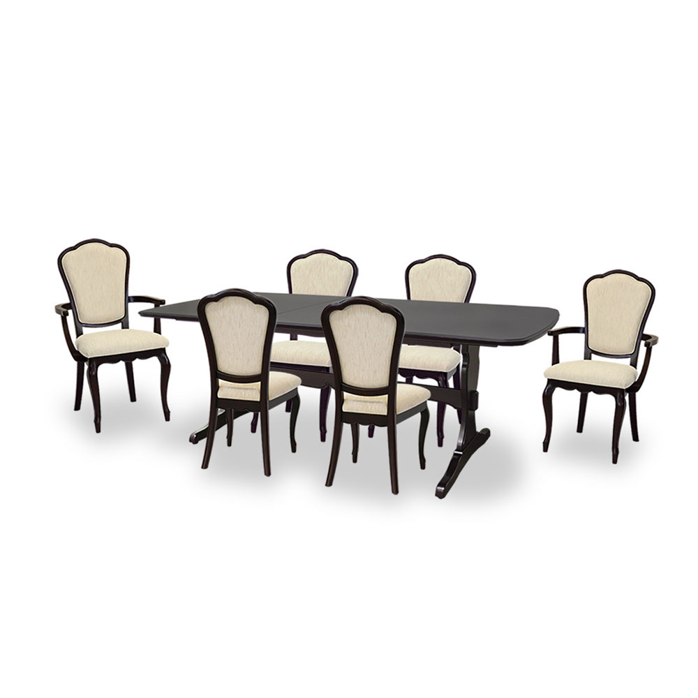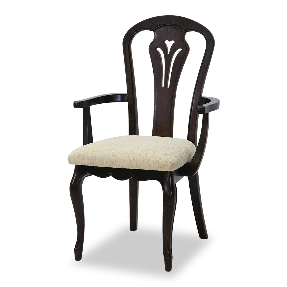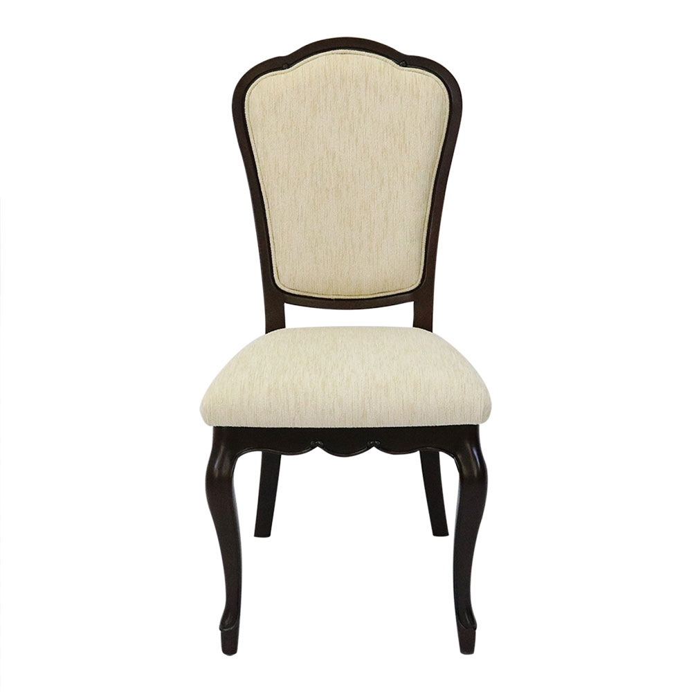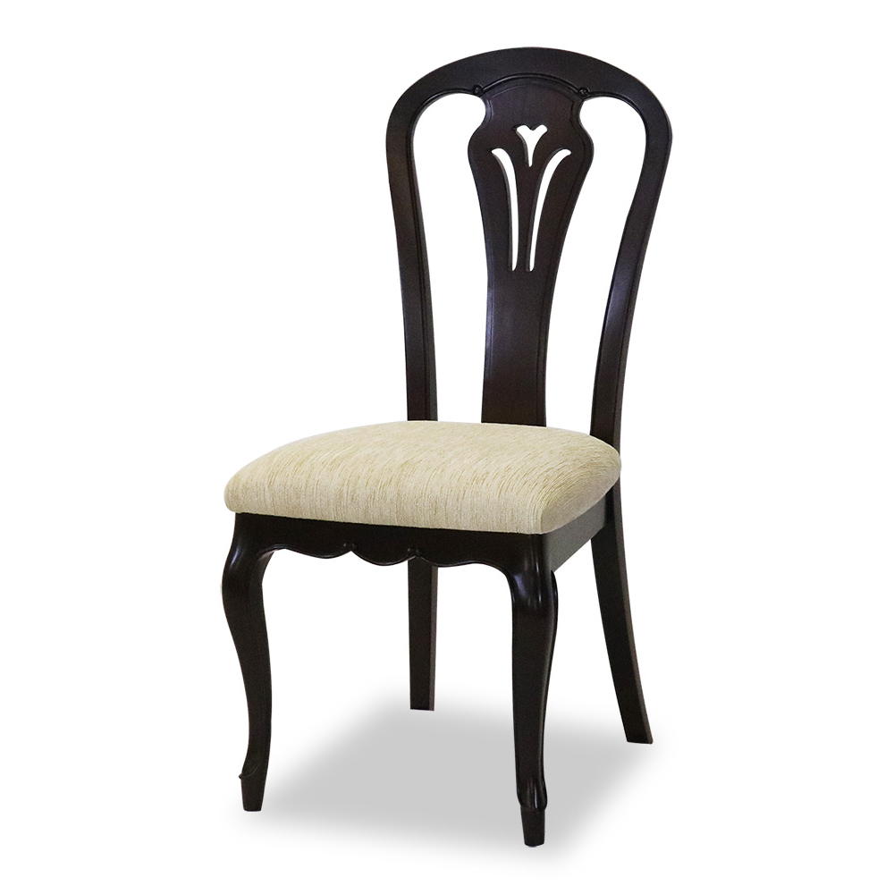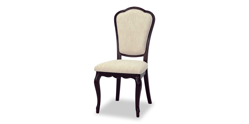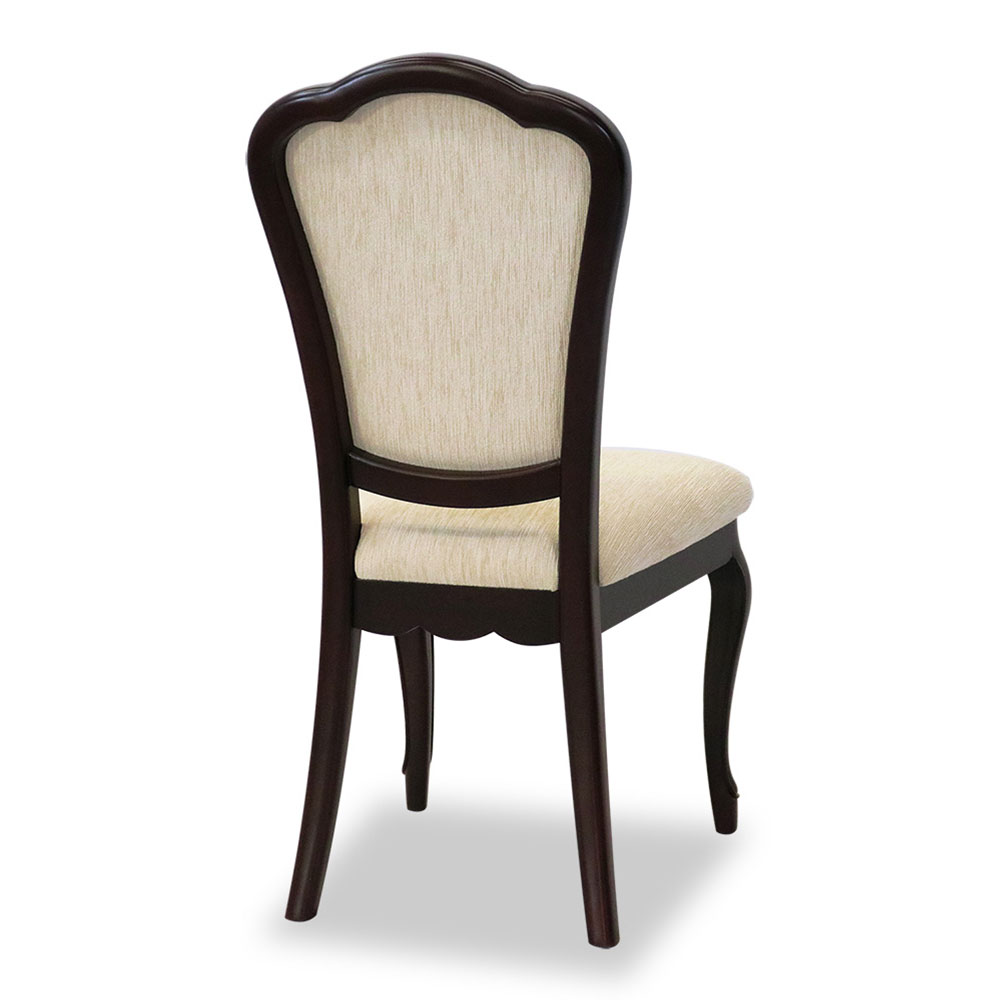 ダイニングチェア「フルールD DM」マホガニー材ダークブラウン色 布ベージュ色