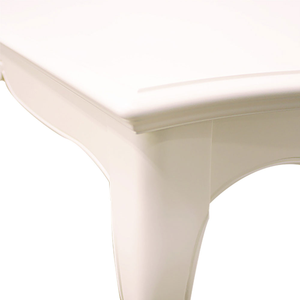 フレンチカントリースタイルの家具のデザインは丸みを帯びた優美なラインのものが主流で、 フレンチエレガンスの代名詞ともいえる「カブリオールレッグ」(猫脚)となめらかな女性的な 美しいラインが特徴です。フルールWHシリーズは表面になめらかな木肌のリンデン材、脚部にマホガニー材を使い、 木肌が薄っすら残るミルキーホワイトカラーで上品な印象に仕上げたシリーズで、フェミニンスタイル、ガーリー・ロマンティック等の エレガンススタイルやロココ調コーディネートで、優しい気分になれるような インテリア空間を作り出してくれます。