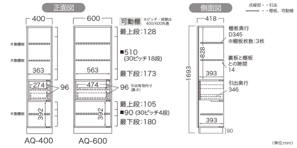 | 幅400(AQ-400) | 幅400x奥行418x高さ1693 |